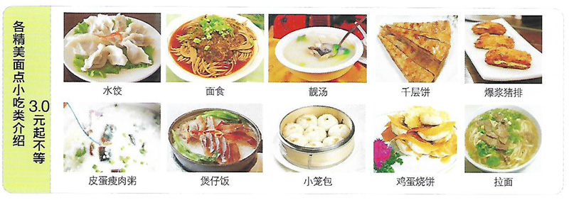 D、面點類:拉面、刀削面、涼面、水餃、湯粉面、蒸粉、餅類等品種,價格3.0元起不等。