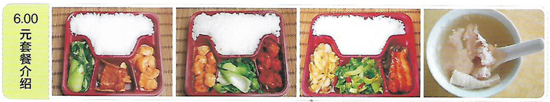 (例如:5元可吃二葷二素,米飯自由吃,任吃飽,送例湯)。